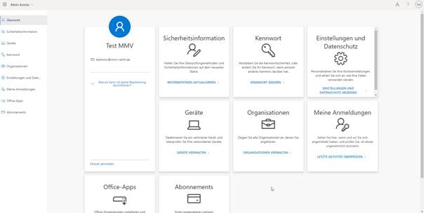 1. Anmelden im Browser (am besten Google Chrome oder Microsoft Edge) auf https://myaccount.microsoft.com