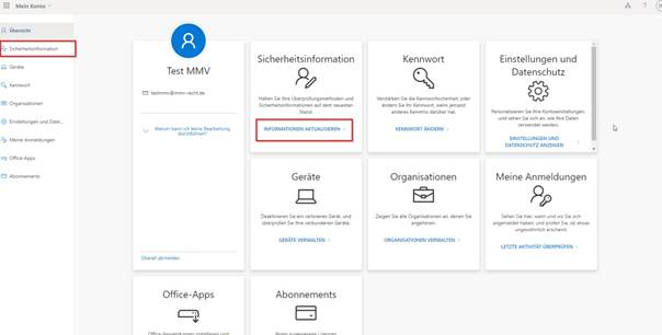 2. In diesem Portal wählen Sie den Punkt „Sicherheitsinformationen“