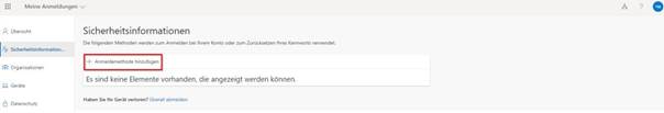 3. Hier über das „+“ eine neue Anmeldemethode hinzufügen