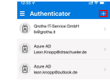 7. Im Anschluss daran können Sie den QR Code einscannen. Dazu klicken Sie auf das „Plus“ oben rechts in der Ecke oder auf „Konto hinzufügen“.