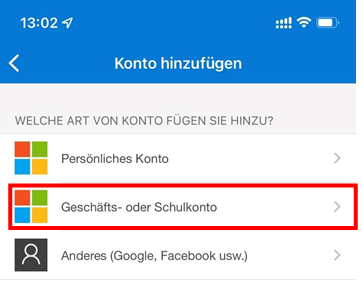 8. Hier wählen Sie bitte „Geschäfts- oder Schulkonto“ aus.